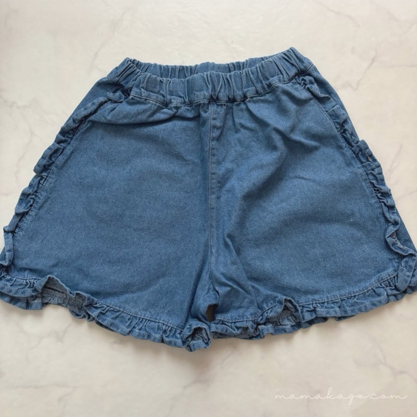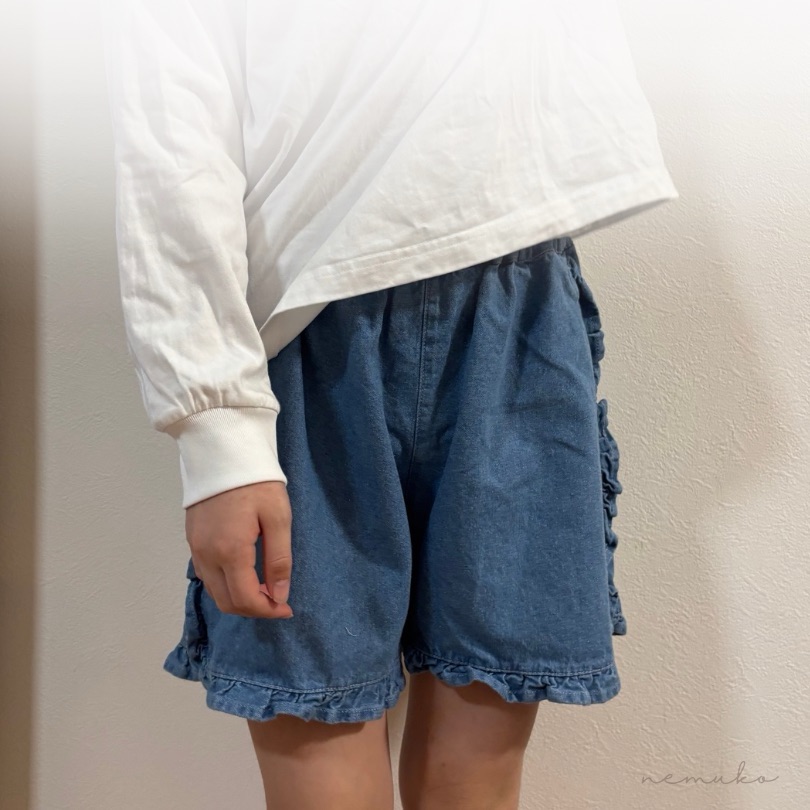 こちらはデニム×フリルのかわいいショートパンツです。145㎝くらいで150着用でぴったりです。