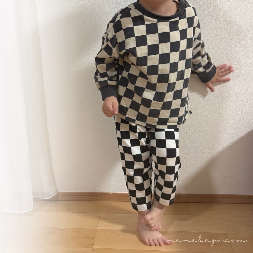 次男は七分丈パンツです。普段100㎝きていて、こちらは110にしたのですが、大きすぎずに着ることができました。