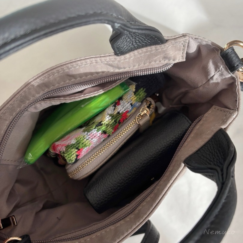 長財布はギリギリ何とか入るけど出し入れに引っかかったり、バッグの形が崩れるかも💦
